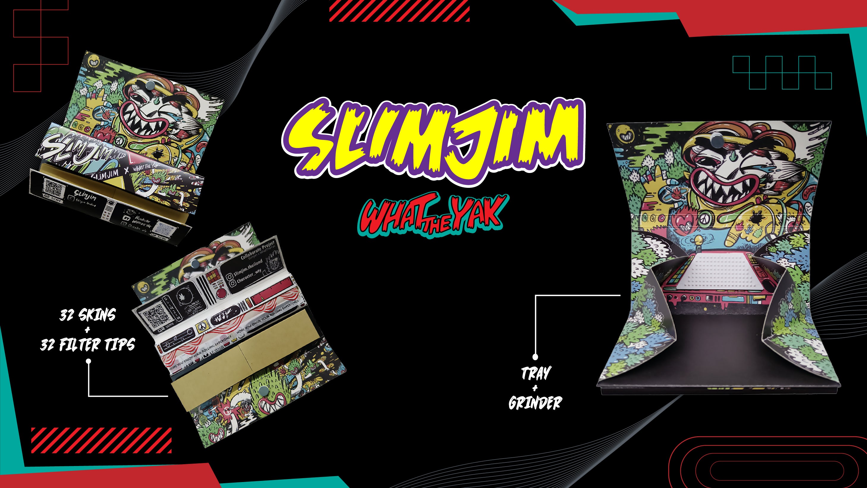 Slimjim X What The Yak - Rolling Paper + Tips & Grinder + Tray Pack (Box of 16)